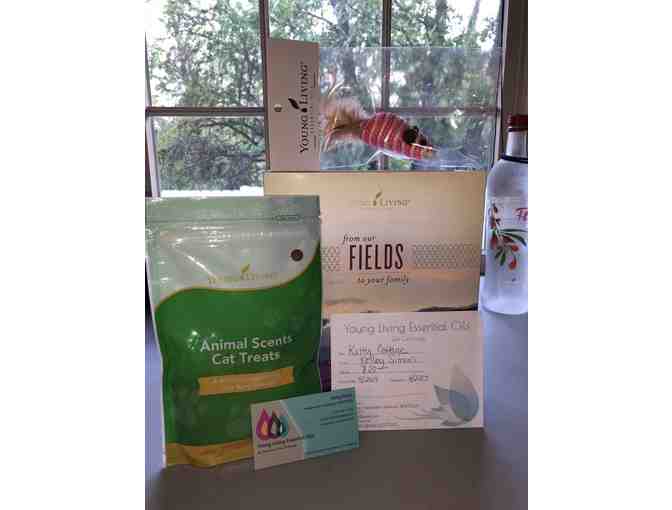 All natural cat treat and toys. Along with Gift card for $10 from Young Living Essential Oils