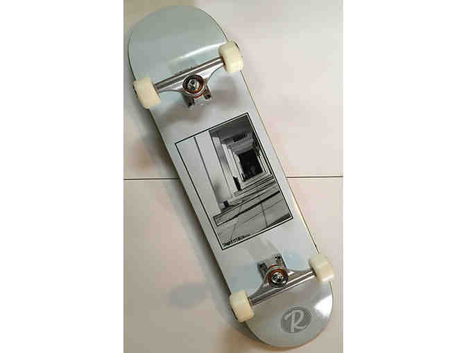 This skateboard has Independent trucks, Pig wheels, and is 8" wide.