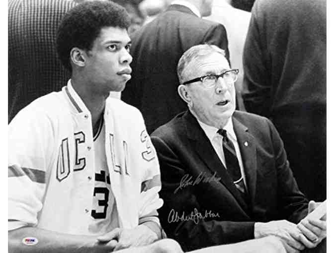 16 X 20 Black and White autographed photo with Abdoul Jabbar and John Wooden