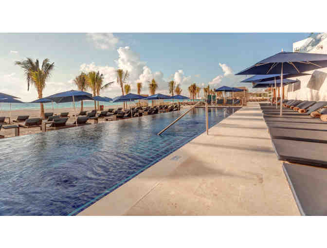 Welcome to spectacular Cancun, Mexico, and one of the most popular locations for beachfront getaways and an unrivaled nightlife. Royalton Suites Cancun Resort & Spa, located in the famous hotel zone is the newest addition to Royalton Luxury Resorts offering exceptional service, stylish architecture and incredible food. Spend your days lounging on the stunning, white sand beach next to breathtaking blue waters, and your nights celebrating under the stars overlooking the ocean and the Cancun strip at the exclusive adults only Level 18 – Rooftop Cabana Lounge ($).