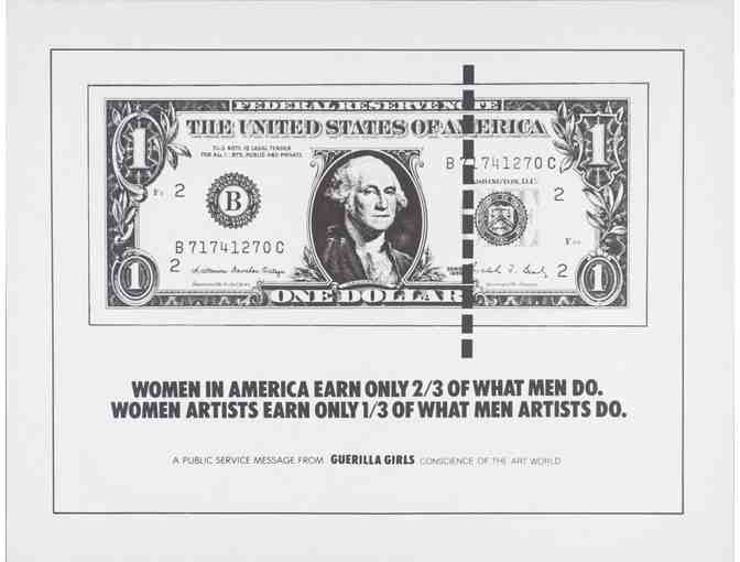 "The Guerrilla Girls are feminist activist artists. Their anonymity keeps the focus on the issues, and away from who they might be. They wear gorilla masks in public and use facts, humor and outrageous visuals to expose gender and ethnic bias as well as corruption in politics, art, film, and pop culture. Guerilla Girls has done over 100 street projects, posters and stickers all over the world, including New York, Los Angeles, Minneapolis, Mexico City, Istanbul, London, Bilbao, Rotterdam, and Shanghai, to name just a few."