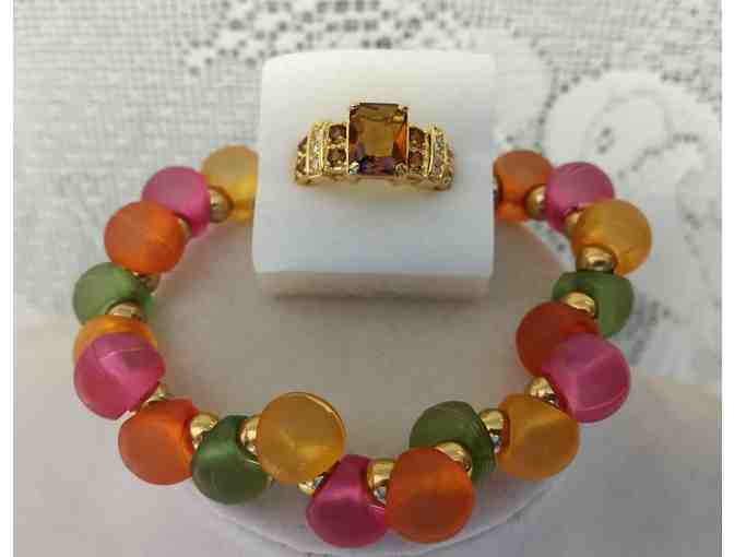 Hand Crafted Expandable Bracelet & Ring Set (Ring sz 7-8) # 4