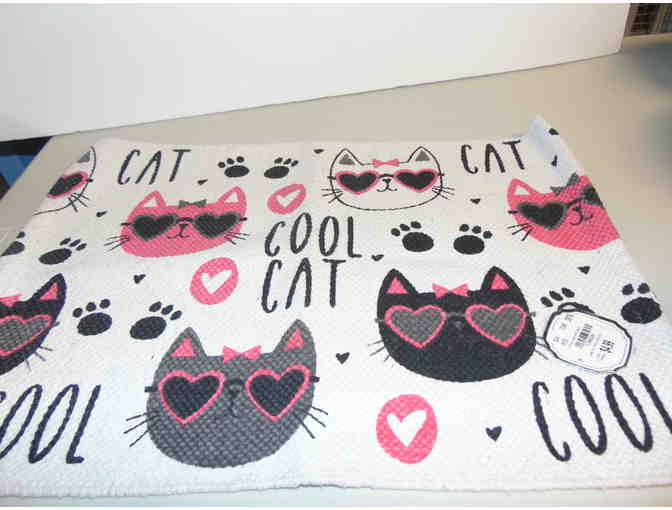 This cool cat pet mat for your car or in your home is 18 3/4"x13 1/2" and was donated by Cherie Halda