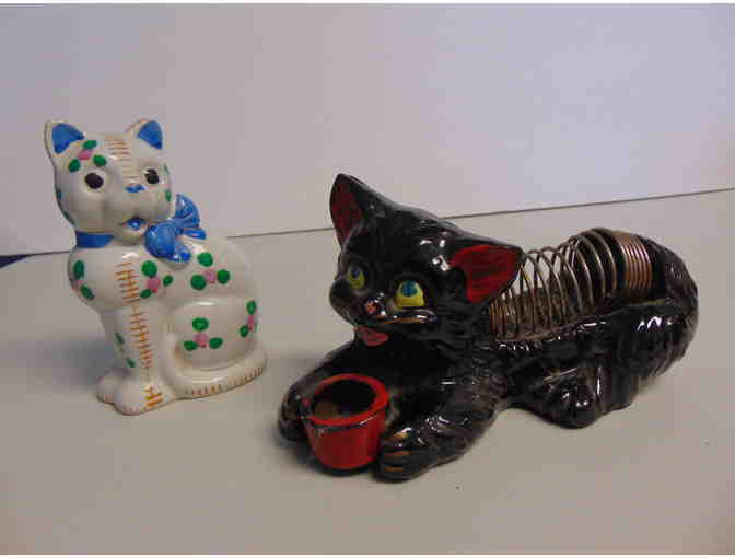 2 Vintage Cat Collectibles: Letter Holder is 6 1/2" Long x 3 1/2"; and other kitty is 4 3/4"x 2 1/2".