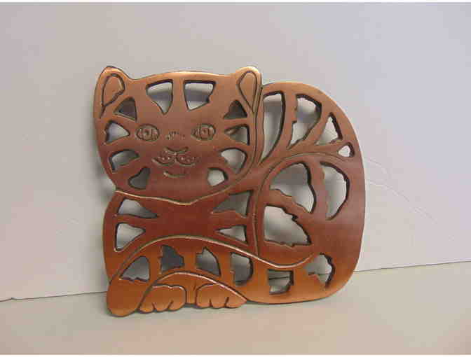 This cute metal cat trivet also has a hook to hang on wall. It measures 7"x7" and was donated by Alayna VanBrocklin.