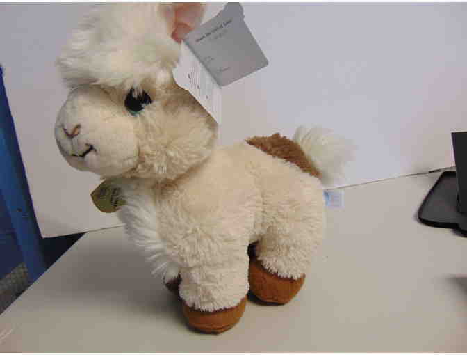 This Precious Moments Llama is 10" tall. Click on photo to see two views of this adorable stuffed animal.