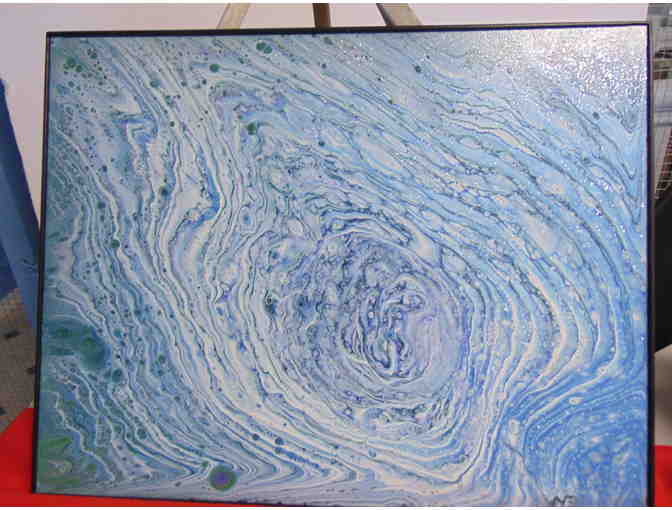 This 11"x14" Fluid-art painting was crafted and donated by Carol Wilson.