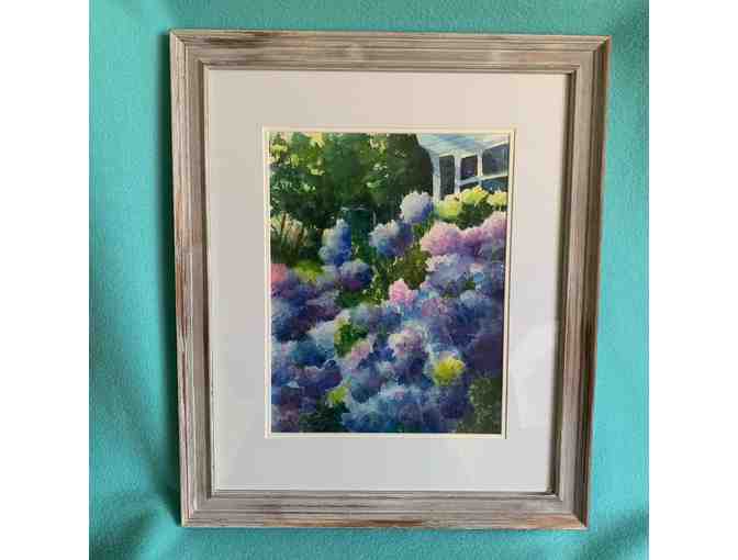Bring summer to your home year-round with the lovely watercolor painting "Cape Hydrangeas" by Massachusett's artist Patricia Canney. Watercolor is matted and framed, under glass.