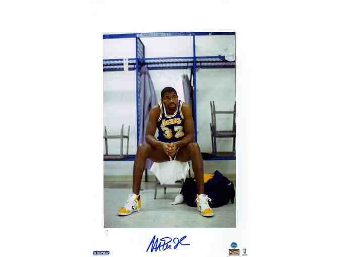 - Magic Johnson LA Lakers Autographed Sitting in Locker Photo