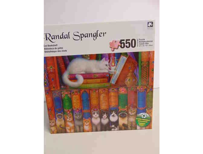 This Randal Spangler 550 Piece Cat Bookshelf Puzzle (24"x18") was donated by Helen Melichar.