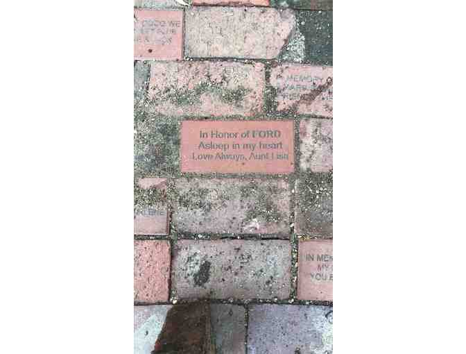 Your winning bid will go towards the purchase of a memory brick in memory of, or in honor of, a pet or person. You can have 3 lines, 20 spaces each (including spaces) and memory bricks are for a donation of $100. So your winning bid will get you a brick for our walkway.