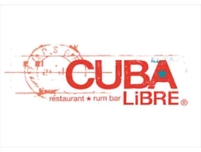 A gift certificate for dinner for two up to a $50 value at Cuba Libre Restaurant & Rum Bar. Menu by James Beard Award winner Chef-Partner Guillermo Pernot.