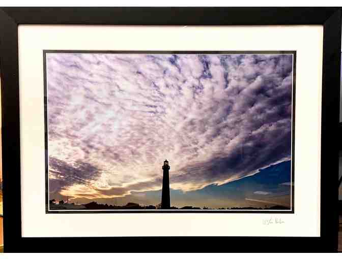 Beautiful framed photography of the Cape May Lightouse by photographer, Judge Leonard Sachar.
