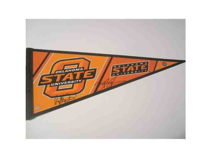 Barry Sanders Dez Bryant Oklahoma State Autographed Football Pennant