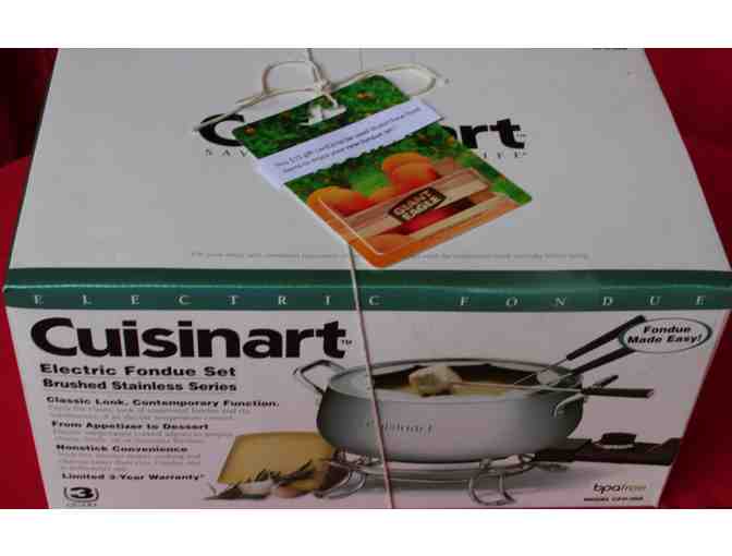 Now fondue is easier than ever! Prepare chocolate, cheese, broth or oil fundues in this elegant 3-quart brushed stainless pot. The stick-free Cuisinart Electric Fondue Set has a heating element built into the base of the pot and a thermostat that adjusts to a wide range of temperature settings. The nonstick pot offers superb food release, and the entire unit is dishwasher safe, making cleanup a breeze. Use the $15 Giant Eagle gift card to buy supplies for your next fondue night!