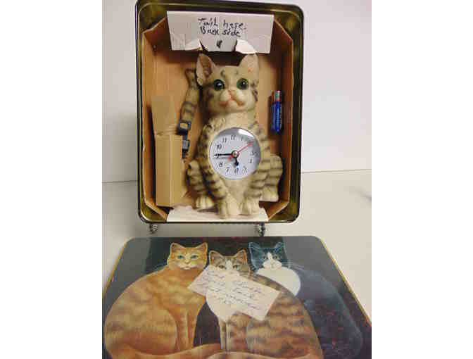 Cat Clock w/Moving Tail is in a 1995 Collectible Tin (Stephen Lawrence Co).
