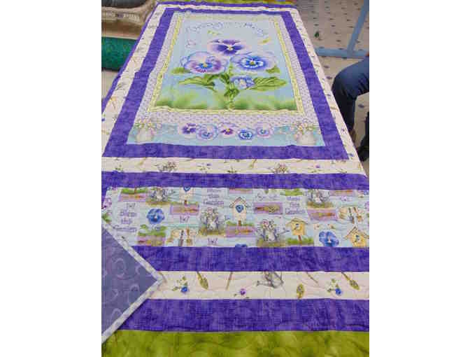 'Pretty as a Pansy' Garden Quilt (57 1/2"x71") donated by Dee Winter.