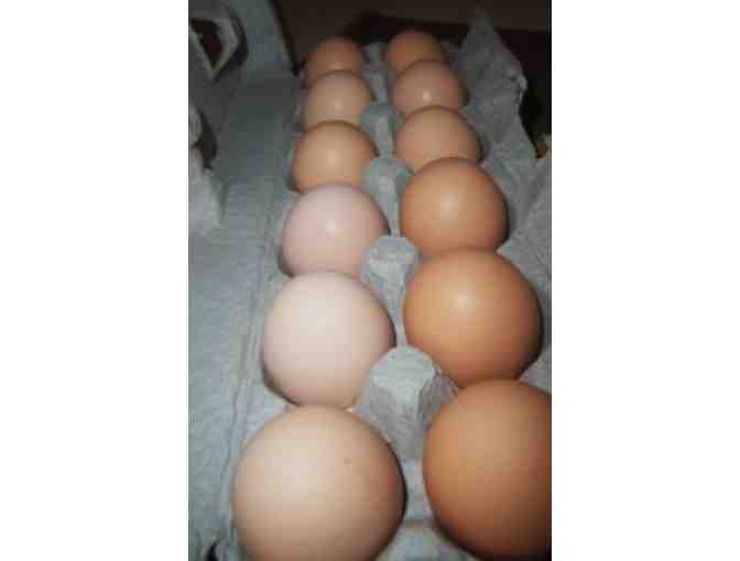 Five dozen farm fresh brown eggs from Uncle Craig's chicken coop. Take one dozen or take all five.