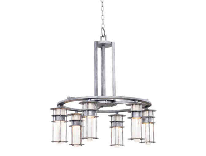6 Light Chandelier With Clear Seeded Glass & Perforated Holder