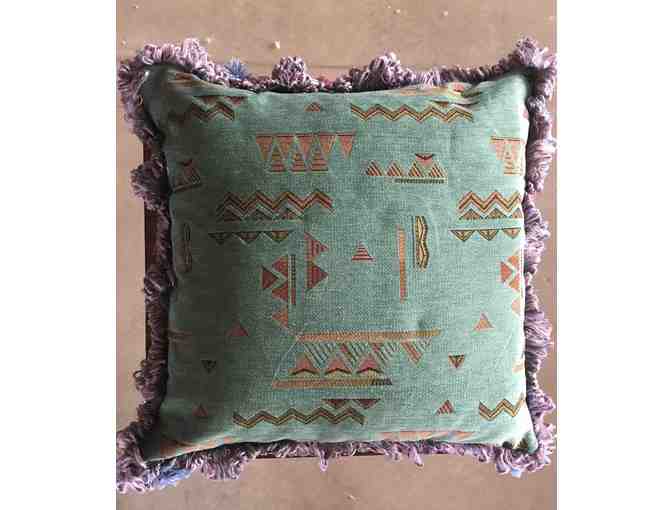 Set of two green floor cushions with tassels