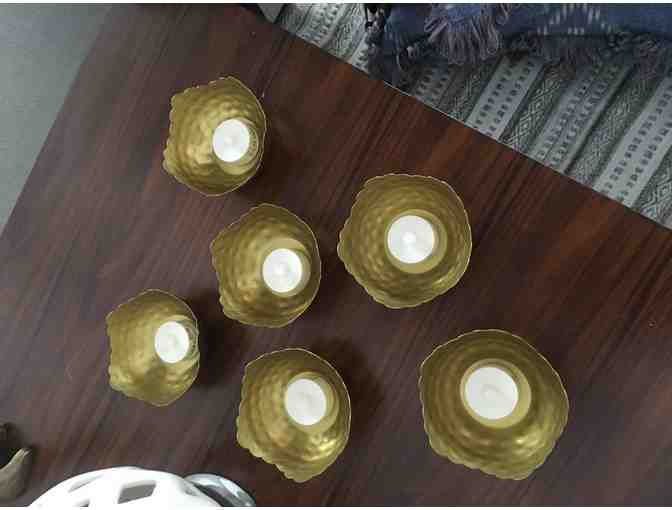 Hammered Metal Tealight Holder (Set of 6) with candles