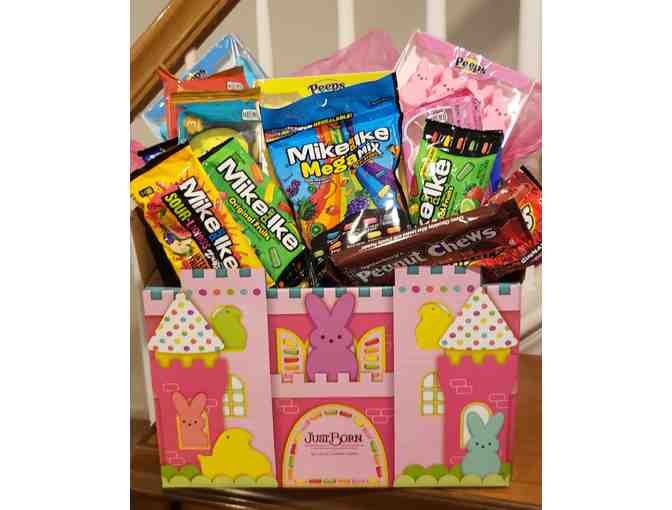 A sweet castle overflowing with treats from Just Born Confections, the makers of Peeps! Box includes 4 boxes of Peeps, 3 special flavors of Peeps, 6 Goldenberg's Peanut Chews, 7 boxes of Mike and Ike candy in assorted flavors.