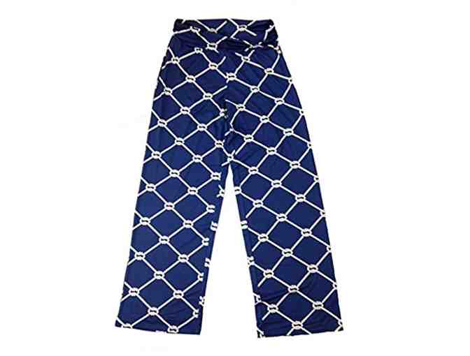 Mudpie Harlow Beach Pant in Navy Knotical pattern. Three pants available - 1 Size Medium (8-10) and 2 Size Small (4-6). Winning bidder selects size and quantity.