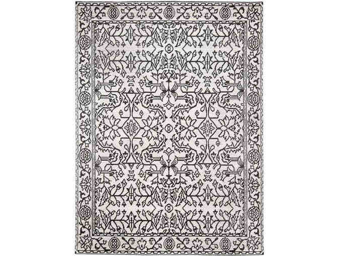 This stunning 10 x 14 rug is hand-knotted using wool and bamboo silk.