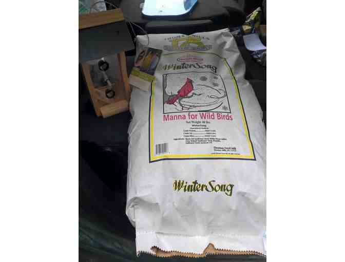 Forty Pound Bag of Wintersong Bird Feed with a Slate Roof Bird Feeder WinterSong Mix is the best we have to offer. Made with the top choice seeds for birds, WinterSong Mix will bring color and variety to your bird feeders!