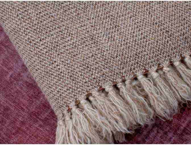 Handwoven 100% wool blanket, single size in beige and browns but used as throw. Pre-shunk and machine washable.
