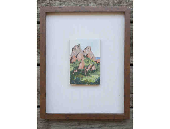 Framed, plein-air painting from the Garden of the Gods, acrylic on wood panel 2019 artwork is signed and dated by the artist.