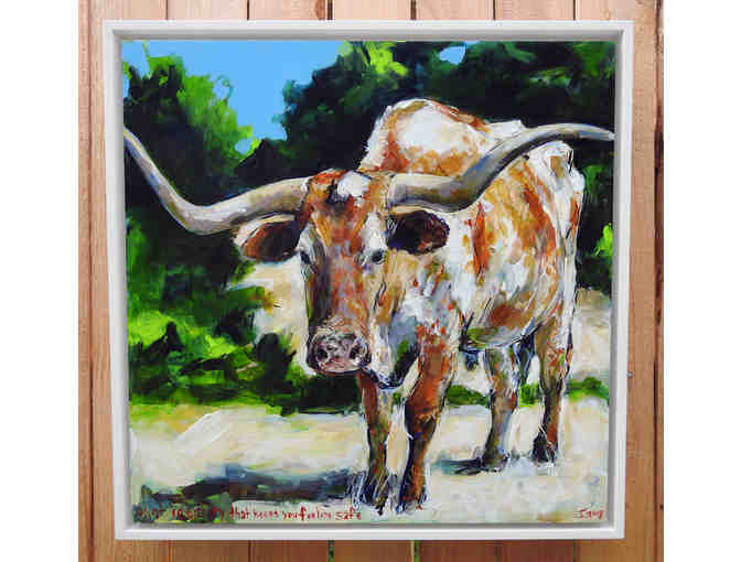 Original Vibrant Cows painting. Professional acrylic paint and mediums on cradled wood panel with floater frame 2018 Joseph Magnano has been focusing on Cows since 2014, hence Vibrant Cows. He has met all the cows he paints. He works from photo references that he shoots while visiting farms and ranches. Each painting has its own special title. With the safeness of the cow image and the direction of the title, the works become a place of meditation, reflection and much more affordable than therapy.
