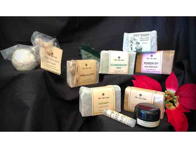 An all natural collection of soaps and more including: Pet Soap - Flea & Tick Repellant; Rosemary Lavender; Honey-Lemon de Creme Goats Milk; Poison Ivy - Jewelweed; Vanilla Latte; Scarborough Fair and Dead Sea Salt Spa Bar. Plus, Kissy Lip Balm and Poison Ivy - Jewelweed Salve.