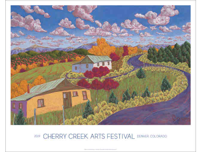 'Happy On the High Road' The FIRST edition of the signed, limited edition 2019 Commemorative Poster for the Cherry Creek Arts Festival titled "Happy On the High Road" drawing created by Jennifer Cavan in booth 182.
