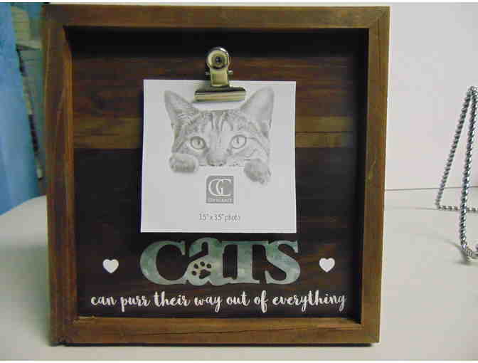 3.5x3.5 Photo Frame ins 8"x8" Wood Plaque donated by Helen Melichar.