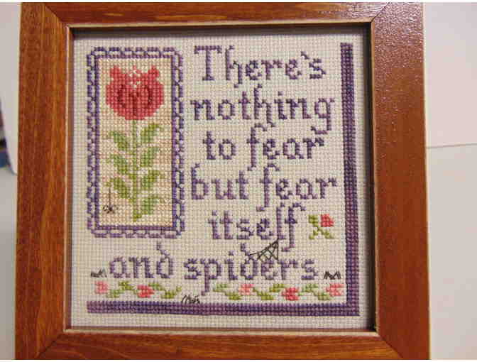 Framed Cross Count Stitch ready to hang-Donated by Kim Baldwin. 6"x6" frame.