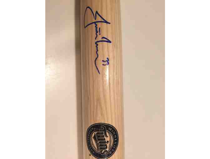 Donated by the Minnesota Twins. This is a beautiful Twins bat and autograph.