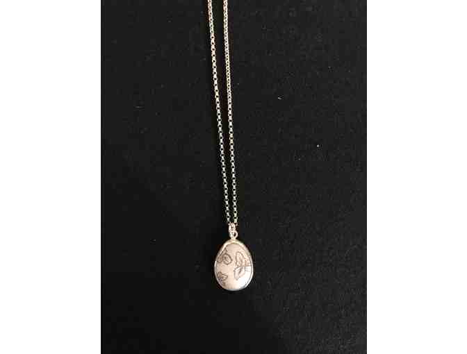 Hand drawn imagery on vitreous enamel w/24 karat accent set in silver