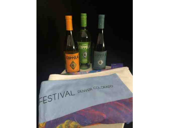 Spread out at your favorite park and enjoy 3 Francis Coppola wines (pinot noir, chardonnay and pinot grigio) on a signature 2019 Cherry Creek Arts Festival towel featuring the whimsical work of 2019 Poster Artist, Jennifer Cavan.