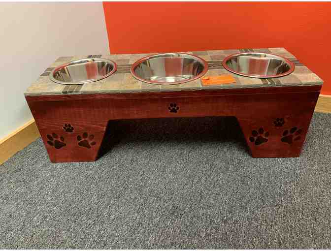 A perfect item for families with two dogs! This elevated dog bowl holder uses real wood and tile to create a high quality and stylish feeder.