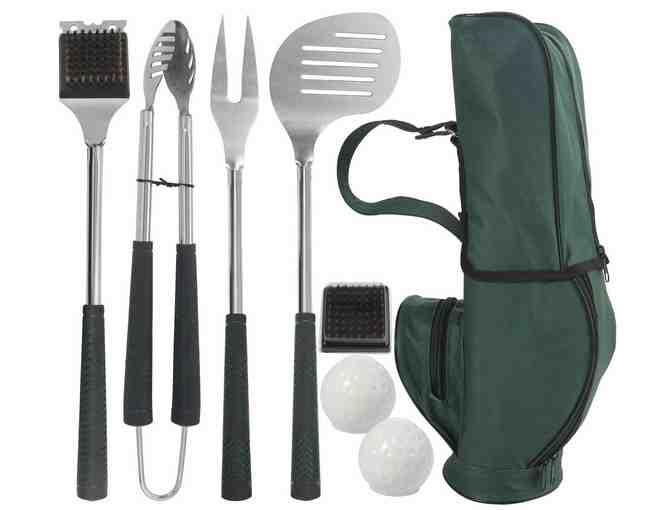 grilljoy 8pc Golf-Club Style BBQ Accessories with Long Heat Proof Grips & Stainless Steel