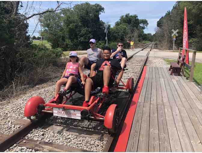 A rail explorer is a pedal powered vehicle that rides on railroad tracks. They have 4 steel wheels, hydraulic disc brakes, pedals for each seat, and are comfortable, fun and easy to ride. Although the rail explorers require pedalling, the magic of steel wheels on steel rails makes the experience very different from riding a regular bicycle. There is no need to carefully watch the road ahead, there is no need to steer and riding is hands free - making it easy to take photographs and video as you roll along. Choose either the Tandem Rail Explorer (2 seats) or Quad Rail Explorer (4 seats) for your ride. Single rider 'VIP Seats' are also available.