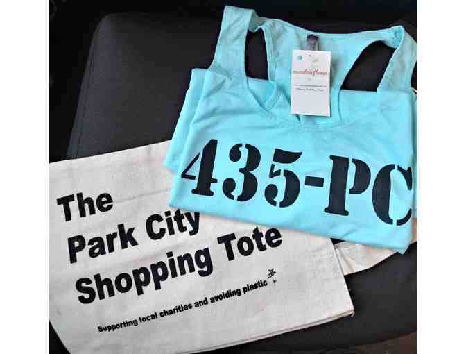 Park City Shopping Canvas Tote Bag and Large Tank Top compliments of Mountain Flower Apparel.