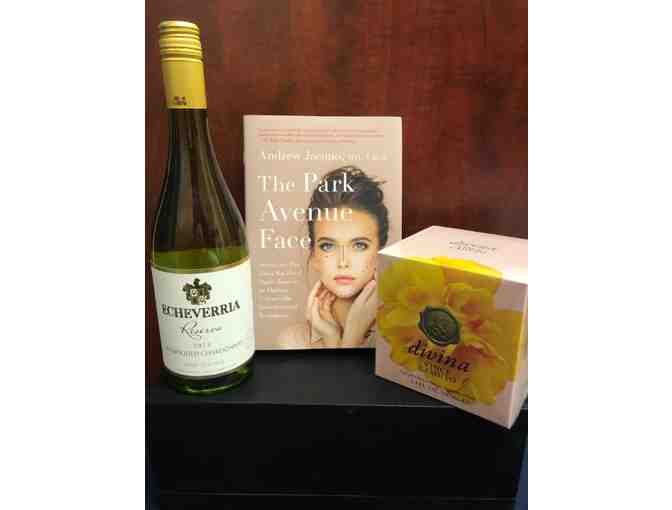 Treat yourself (or a friend who needs a treat!) to a Girls Night In. This gift set includes a copy of "The Park Avenue Face" by Andrew Jacono, M.D., a 3.4 Fl. oz. bottle of Divina perfume by Vince Camuto and a bottle of Echeverria Reserva 2018 Unwooded Chardonnay, Chile.
