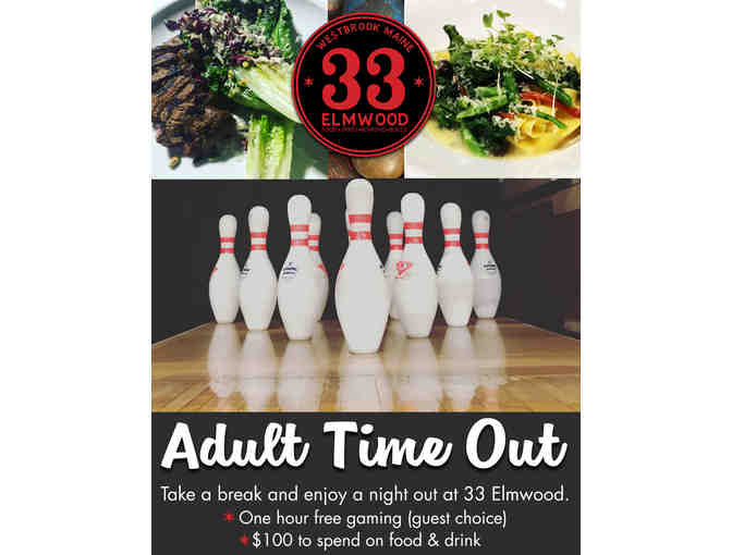 "An Adult Time Out" for four: One hour gaming (guest choice) + $100 to spend on food.