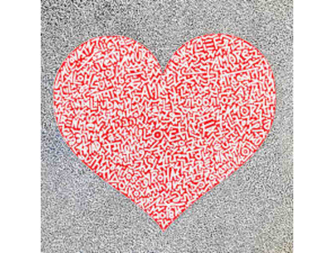 This design features Marco Santini's One Love logo, with the word love in 50+ languages, meant to signify that there is more that unites us than divides us. Surrounding the heart, Santini will paint words of love and positivity as heard from guests at Play Fore! the Kids cocktail dinner reception on August 5, 2019.