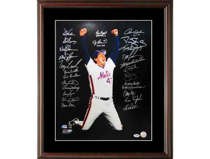 Catch the moment when the New York Mets clinch their second World Championship in franchise history. On October 27, 1986, the Mets defeated the Boston Red Sox in seven games and the Mets were amazin’ again. This photograph is autographed by the 1986 World Series Champions. This item comes with a Certificate of Authenticity.