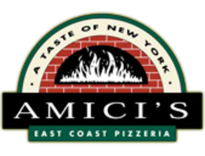 Amici’s East Coast Pizzeria has always been known for their freshly made pizzas, but they also have a full menu including delicious pastas and sides like flame-roasted lemon chicken wings and a variety of salads and wonderful pastas including cheese ravioli, four cheese lasagna with meat sauce, fettuccine with pesto and clams, and penne with oven roasted vegetables, garlic, parmesan and fresh herbs. Quick - bid on this one before some other lucky person gets to devour your delicious pasta!