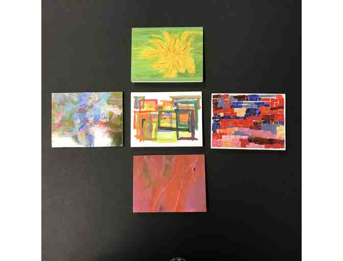 The winning bidder will receive a variety 5 pack of note cards with envelopes featuring (5) unique artwork designs made by artists of Ontario ARC's Creative Expressions Program.