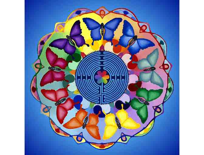 “Meditation on the Circle of Life” is an image created from an original oil painting and digitally created elements. The Labyrinth signifies the path of life and of the soul is surrounded by rainbow butterflies. Life is ever perennial and in a myriad of forms. The size of the image is 7" x 7" printed on 9 ½ x 10 paper using Epson UltraChrome archival inks. It is printed on Epson Velvet Fine Art Paper and mounted in a mat. The whole piece is 12"x 12" and ready to put into a frame. This image is a signed limited edition of 25 with 1 Artist Proof and a Printing Proof. All are signed and numbered by the artist. It comes with a certificate of authenticity. Jacquelyn Paull has been creating labyrinth paintings and digital art for many years. She has a BA in art from San Francisco State University and has exhibited extensively in the Bay Area and in Hawaii.